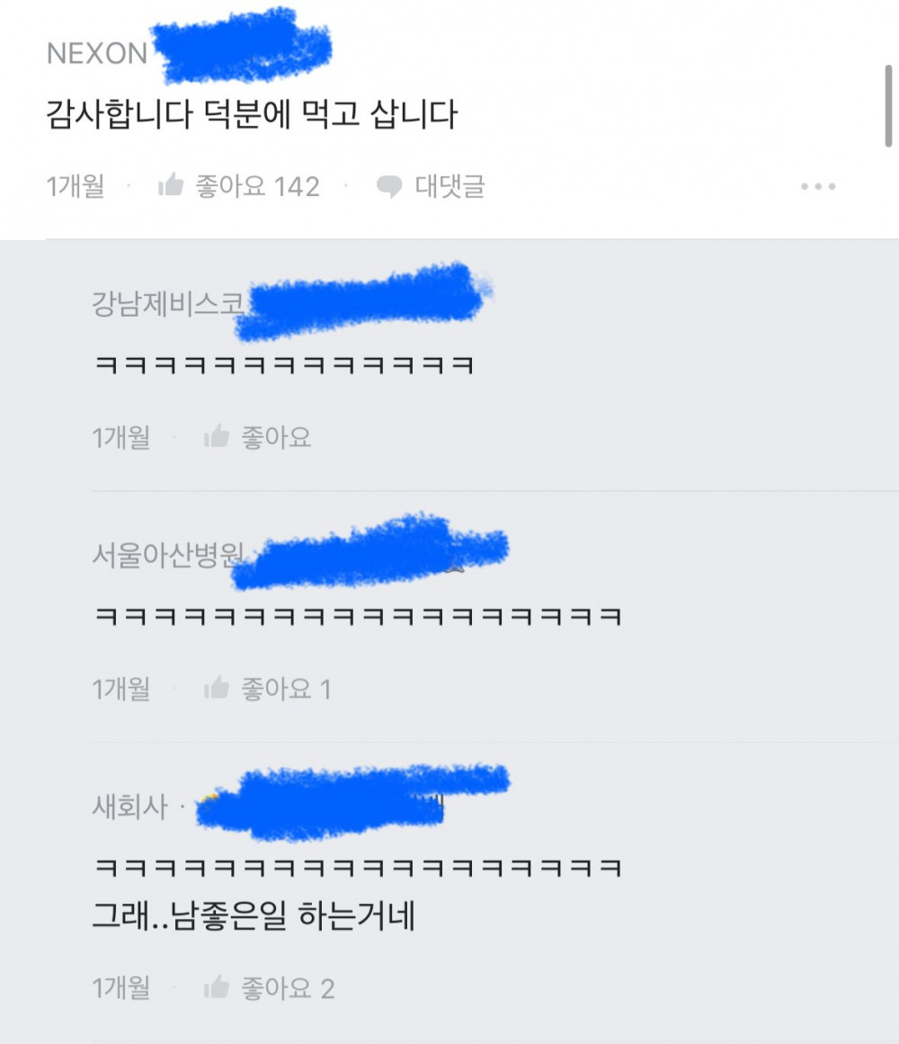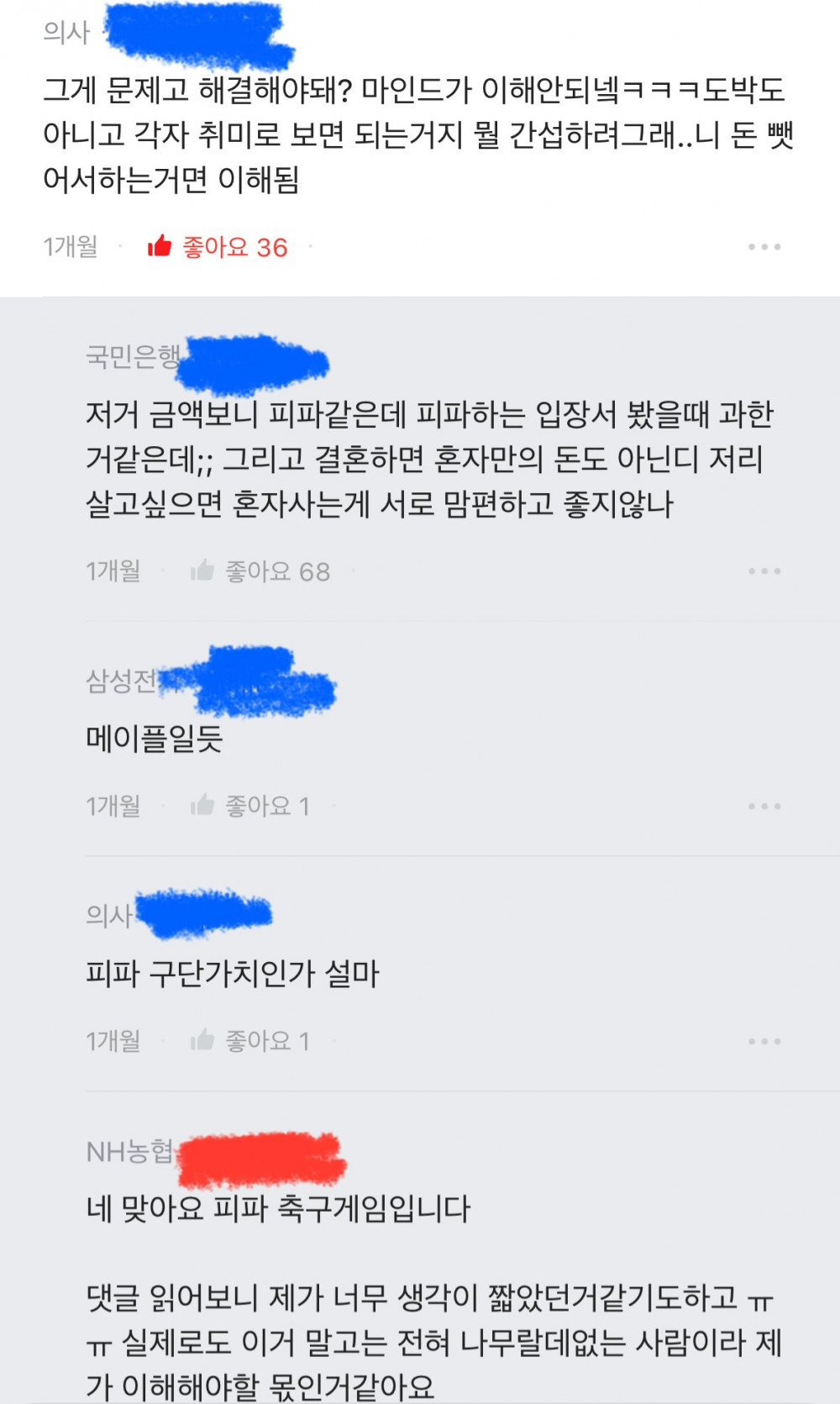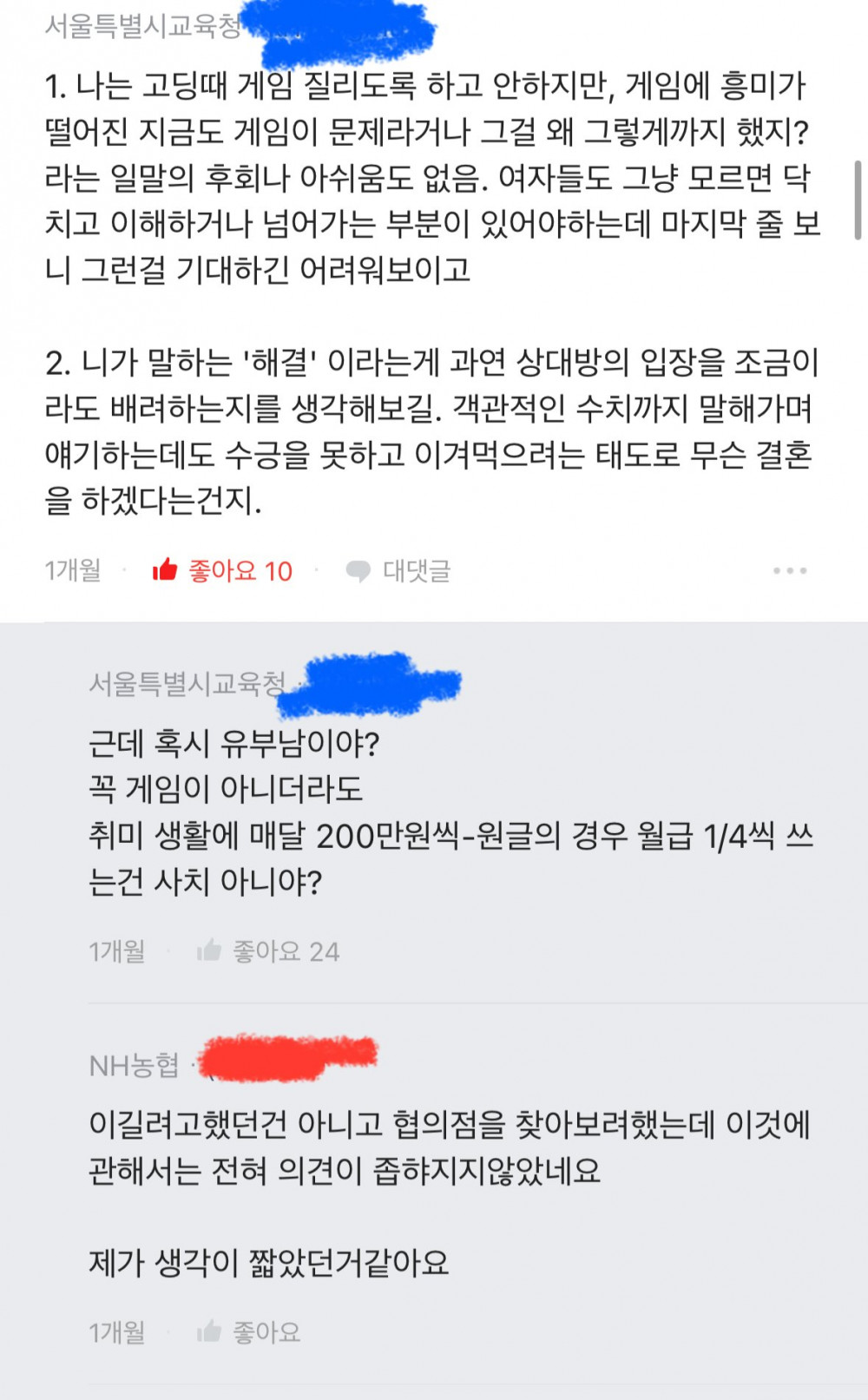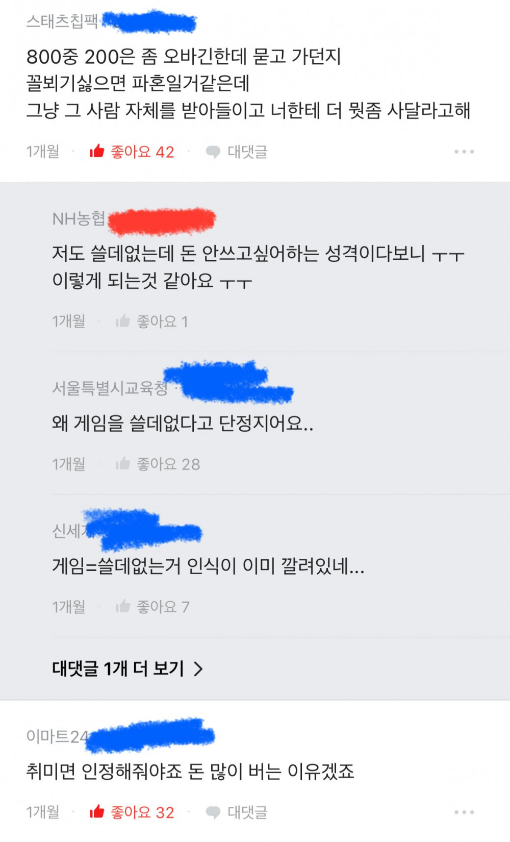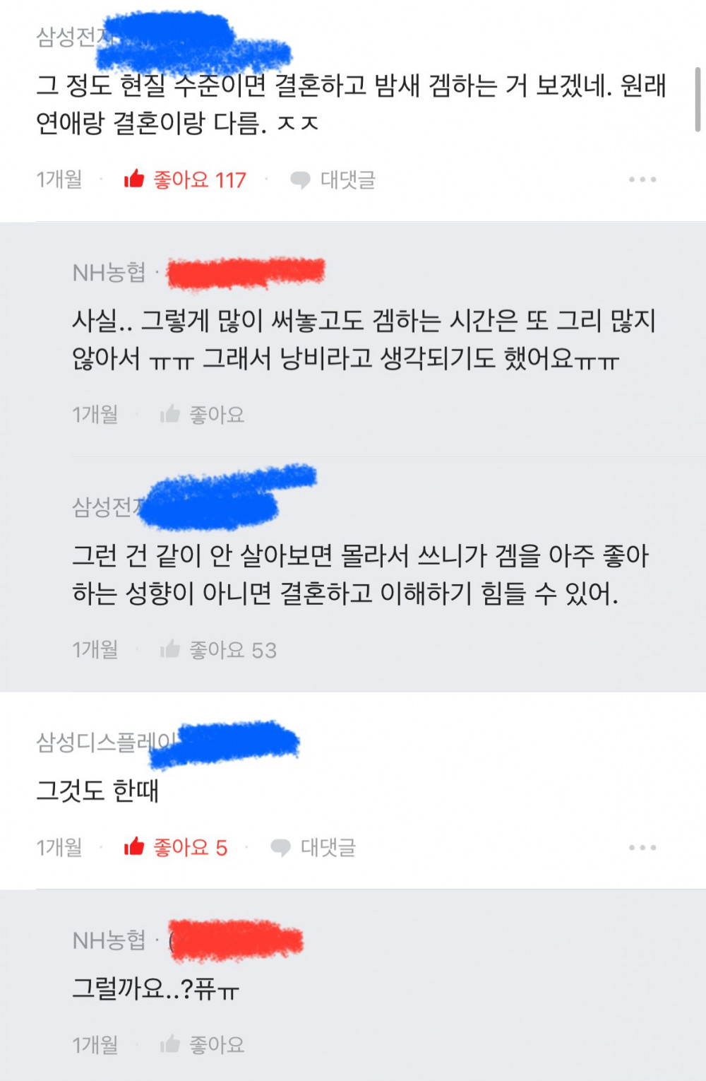 빨간색이 글쓴이 파란색은 댓글들입니다