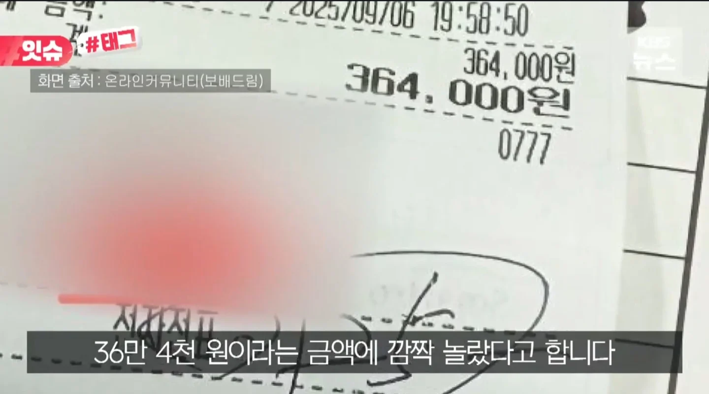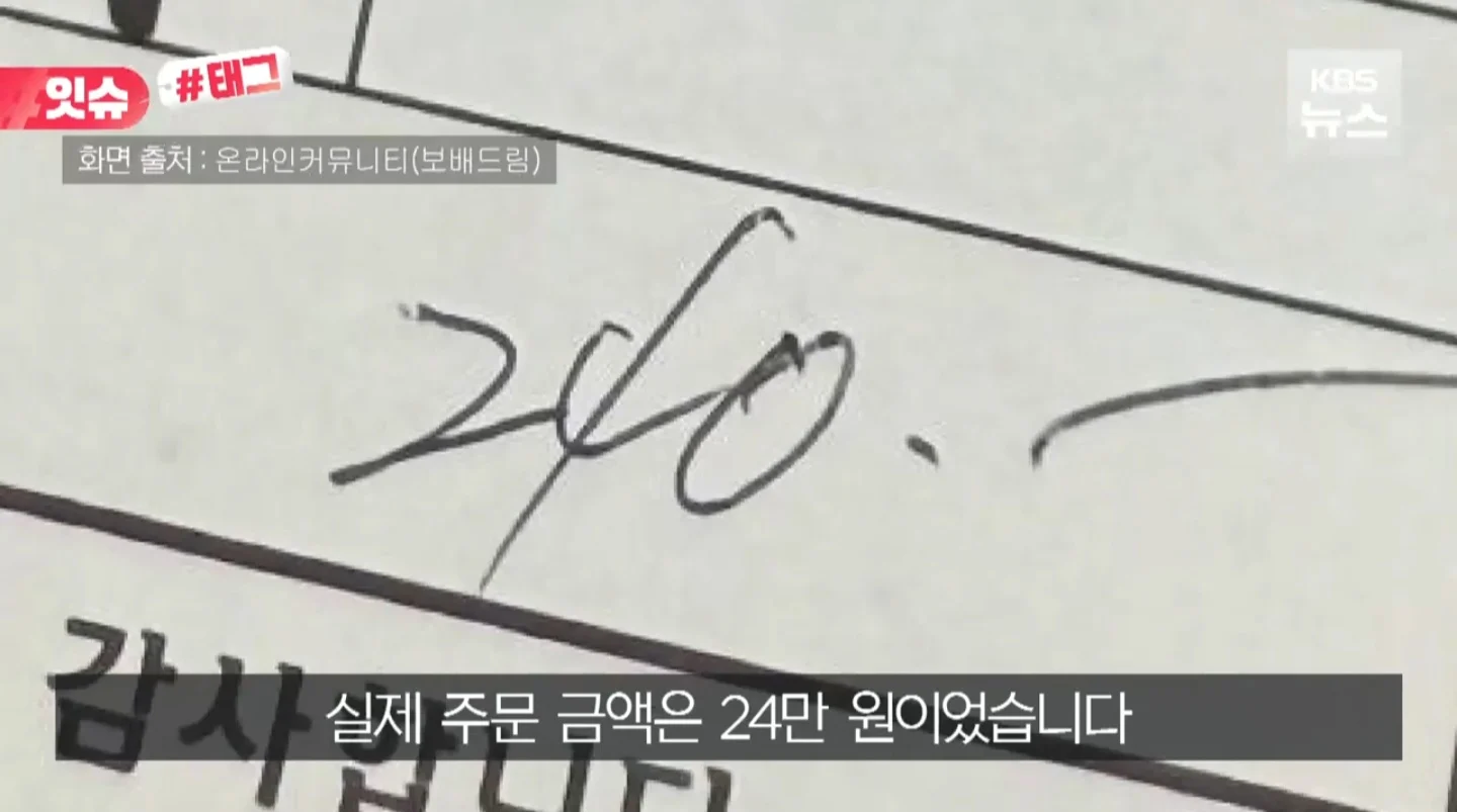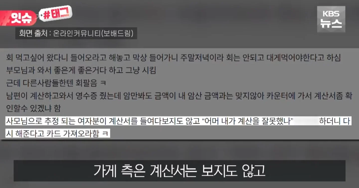 논란중인 속초 대게집 영수증 바꿔치기
